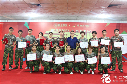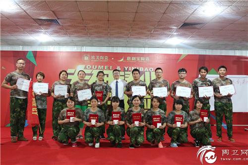 军事化培训环节的最后,项目组在培训期间的PK赛中评选出了本轮培训的优胜团队。根据PK得分,第一名由意利宝陶瓷团队斩获,第二、第三名由欧美陶瓷团队获得,分别由与会领导嘉宾为获奖团队颁发了荣誉证书及奖品。