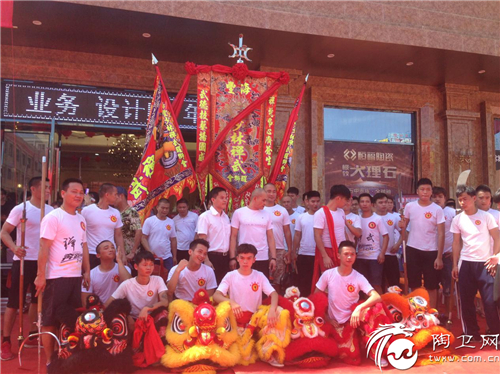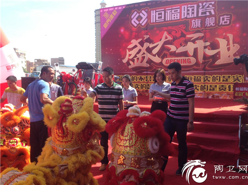 上午,随着爆竹声响起,恒福陶瓷营销副总经理郑键恒先生、海丰豪门建材总裁王海文先生等多位领导进行了醒狮点睛仪式,赋予醒狮生命和灵性。一点左眼——生意兴隆,二点右眼——财源广进,三点天灵——前程似锦!点睛为唤醒狮子,并带给它们散播幸福与吉祥的能力,寓意繁荣富贵,生意兴隆,寓示着恒福海丰旗舰店日后将生意兴隆、财源广进!点睛之后,醒狮在铿锵的锣鼓声中起舞,为现场增添了一份喜气和威武。
