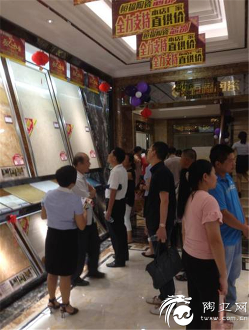 旗舰店内人气爆棚,众多顾客在选购瓷砖产品