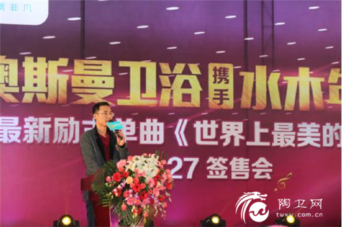在本次活动上,澳斯曼市场总监陈健朝在致辞中表示:“作为节水卫浴的先行者和推动者,澳斯曼卫浴15年来一直秉承“品质、服务、创新”为导向的企业理念,持续地为节省水资源贡献品牌的微薄之力,坚持为消费者创造出更绿色、低碳、舒适的生活方式。继2014年‘节水万里行’后,澳斯曼再次借力明星节水的效应,分别与邰正宵、水木年华、黄日华、廖碧儿、卓依婷等众多节水明星在全国各地吹响节水环保的集结号,旨在让更多的家庭享惠高品质的节水卫浴,并一起加入节水公益行列中,成为澳斯曼至TOP节水形象代言人!”