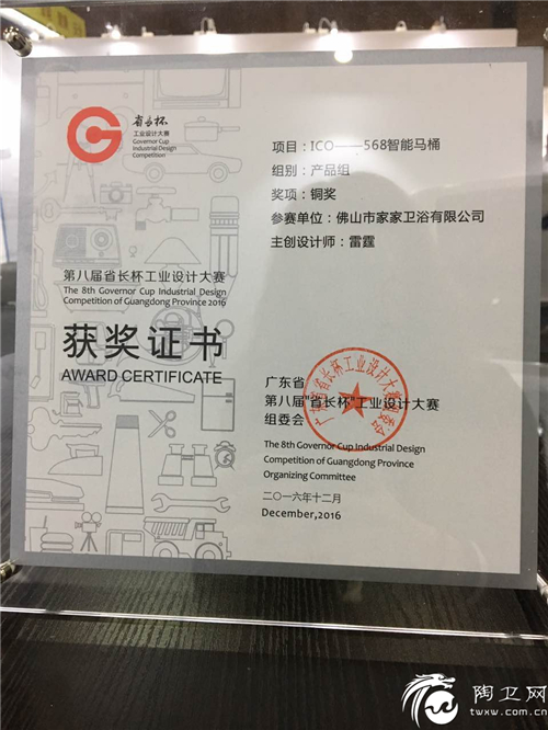 第八届“省长杯”工业设计大赛装备制造专项赛复赛评审,浪鲸洗悦系列智能马桶——ICO568凭借其独特的产品优势,夺下了省长杯产品组铜奖奖项,成为评审现场产品组唯一一项获奖的卫浴产品。