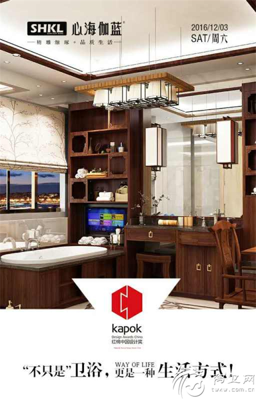 2016年12月3日,由广州设计周主办, 以“设计驱动产业升级”为目标与使命的2016红棉设计中国奖颁奖典礼在广州保利世贸博览馆一号馆隆重举行。心海伽蓝整体定制卫浴——尚善系列在一千多件参选产品中脱颖而出,荣获红棉中国设计奖。