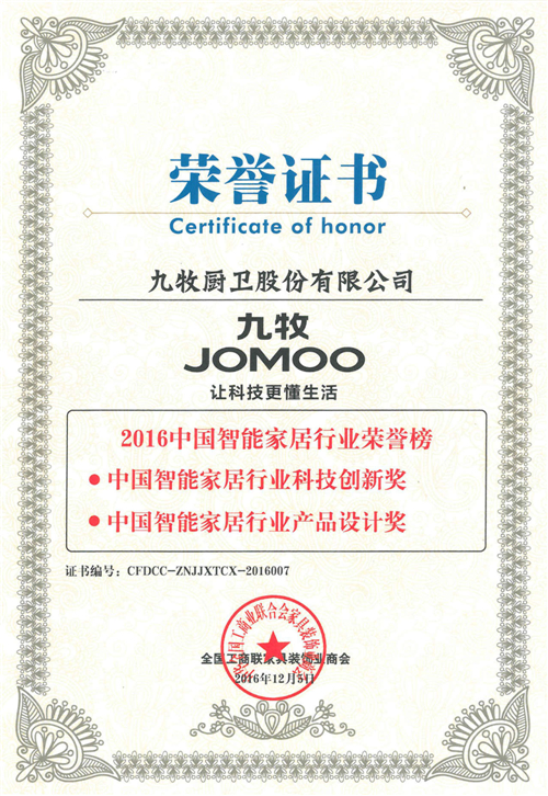 为鼓励企业创新发展, 2016中国智能家居行业表彰大会也在当天同期举行,共设置“协同·创新贡献大奖”、“科技创新奖”、“用户体验奖”、“产品设计奖”等六项大奖。九牧凭借强大的工业设计能力和科技创新能力,一举摘得“中国智能家居行业科技创新奖”和“中国智能家居行业产品设计奖”双项大奖。