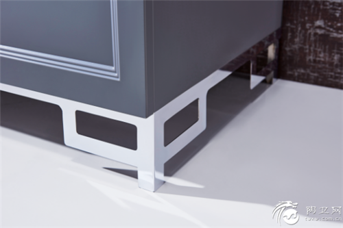 几何感十足的不锈钢柜脚,达到干湿分离的效果的同时,也有助于地面清洁和浴室柜保养。