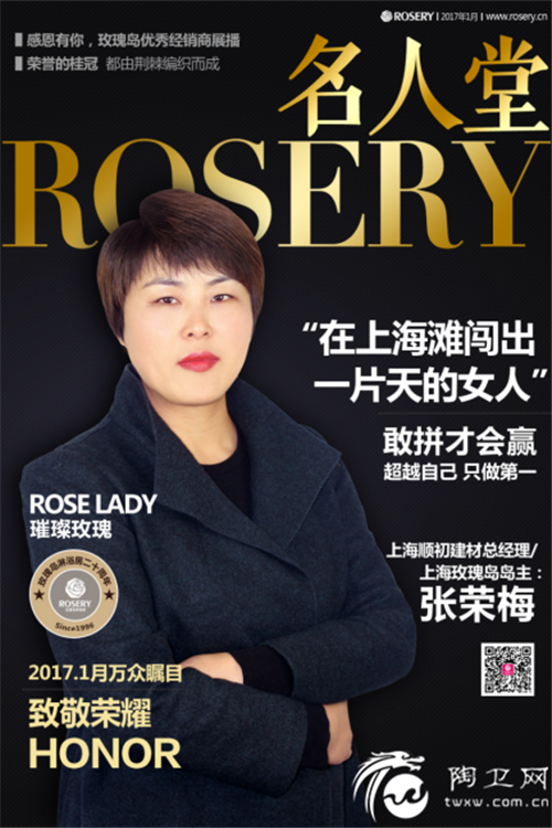 感恩有你,致敬荣誉。玫瑰岛《名人堂》优秀经销商展播于2017年1月1日荣耀开启。荣耀背后,是那群奋斗在一线的玫瑰岛经销商们,他们对玫瑰岛的贡献与付出功不可没。一路有你,感恩同行,荣誉的桂冠都由荆棘编织而成,恰逢玫瑰岛淋浴房品牌创立的二十周年,玫瑰岛《名人堂》为致敬荣誉而来,来听听玫瑰岛上海经销商张荣梅述说她的玫瑰情缘。