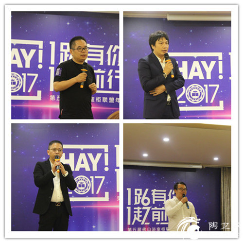 会议伊始,张爱民率先发言。他回顾联盟兄弟一起走过的历程,从只有几个人参加的小论坛,到广州的红星美凯龙办博物馆,一起去法兰克福和西班牙……他表示不管大家身在何方,一定要身体好。2017年企业要走自己的路,做好产品,做好销售,做好服务,最关键的是大家一起把浴室柜产业做专做精做细,才有出路。