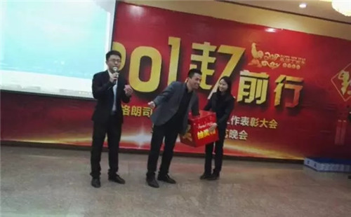 总结表彰会后,格朗司企业举行的2017一起向前迎新晚宴,本次晚宴现场,朗司定制美酒、佳肴、大奖以及精心准备的节目充斥了整个会场,在现场堆满了琳琅满目的奖品:华为NOVE、华为畅想6、九阳豆浆机、按摩器、朗司养生杯等,晚宴现场十分火爆,超过百分之九十的中奖率,参与晚宴的员工都满载而归!一份份奖品,随着一串串掌声、欢呼声与尖叫声的响起而被抽走。大家纷纷表示将更加努力工作,争取2017年取得更好的成绩,最后本次大会在愉悦的氛围中圆满结束,与会人员分赴岗位,开始新一轮征战。