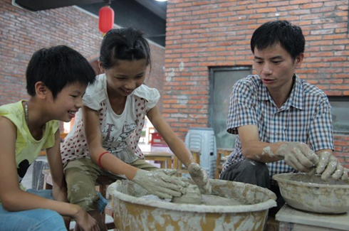 东鹏洁具圆梦团队特意带紫怡一家来到石湾南风古灶进行了一次有趣的制陶体验。玩泥巴的乐趣和一家人其乐融融的幸福气氛融为一体,空气中洋溢着幸福美满的味道。