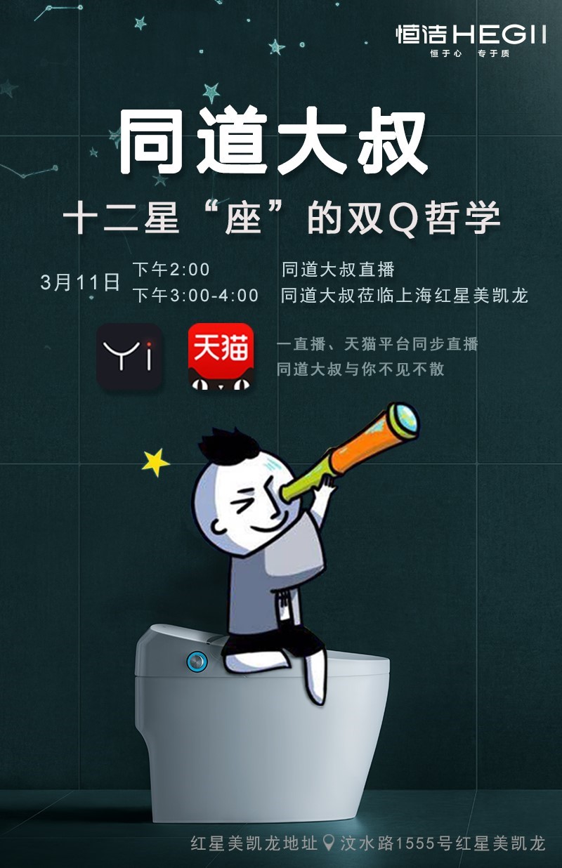 和天猫“恒洁卫浴官方旗舰店”平台进行观看。