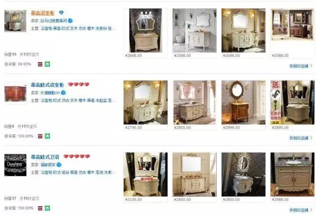 最后补充一点小窍门,由于仿古柜市场比较大,厂家资质参差不齐,竞争较激烈,某些小厂家为了降低价格,使用树脂倒模、中纤板等价格较低的产品,导致仿古浴室柜市场混乱,由于树脂和中纤板是不能制作成擦色产品和开放漆产品的。所以类似于这种厂家,他们的浴室柜产品基本上是单一的实色产品(如黑色、白色)。