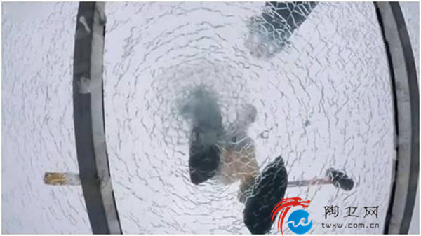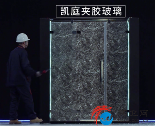 在破窗锤的大力击打下,夹层玻璃的第一层也碎裂了,但是中间膜将碎片完全粘连在一起,没有发生玻璃碎片飞溅,同时,由于采用双层玻璃的缘故,另外一片玻璃还能继续提供支撑力,所以整个淋浴房形态、结构完好,有效保护了正在淋浴的消费者。