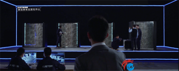 从实验中看到,此时碎裂玻璃渣飞溅,原来的活动门失去受力支撑,很快倒了下来,可以想象,如果此时有人正在淋浴,一起伤人事故无可避免!