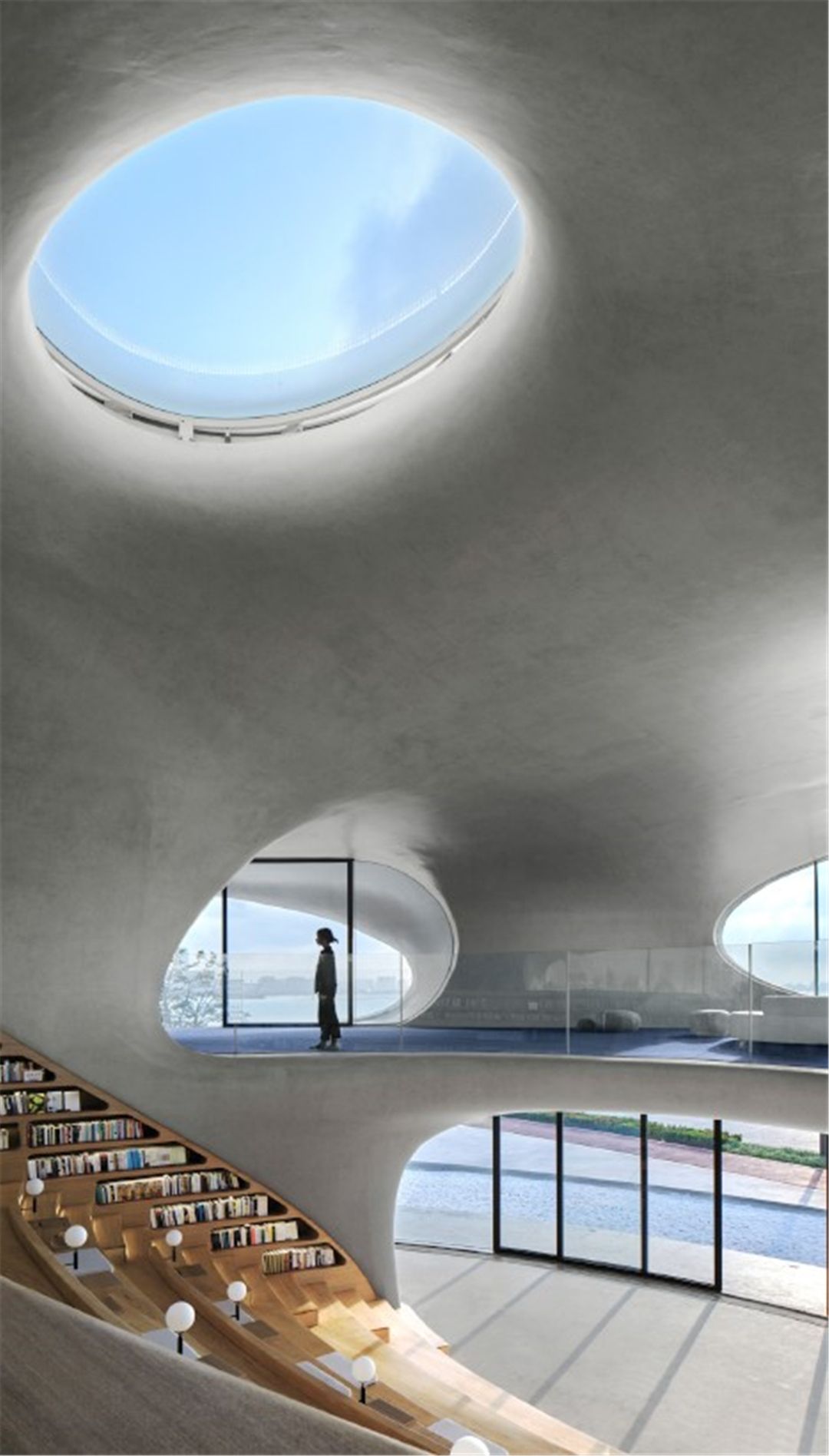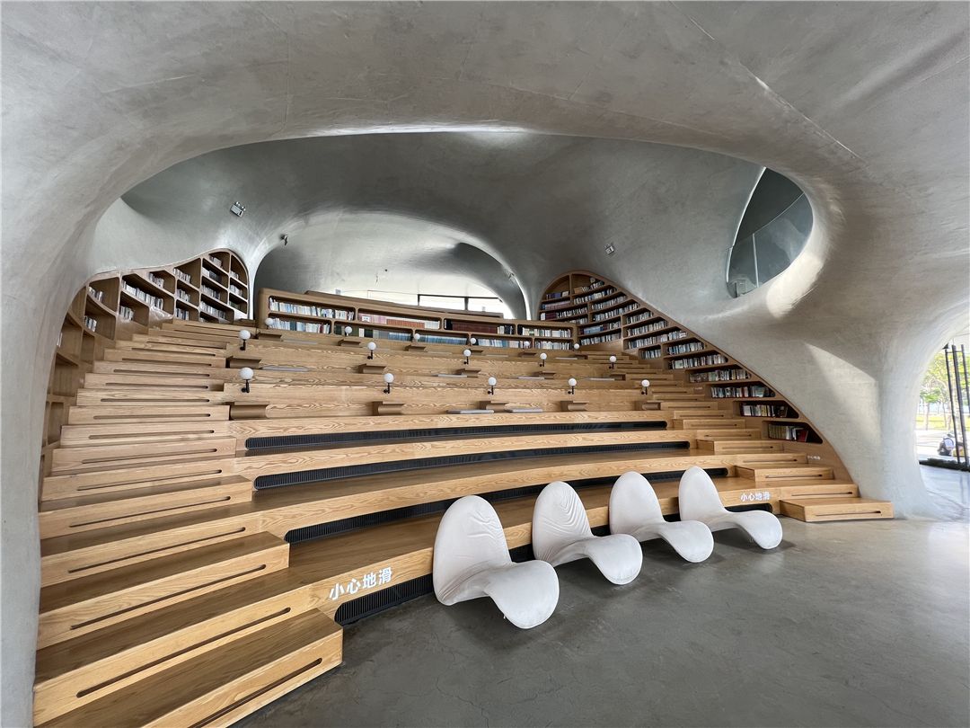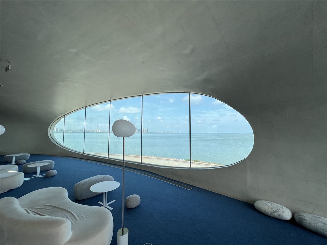 云洞图书馆的建筑设计出自国际著名建筑设计师马岩松及其所带领的MAD事务所之手,“无尽的洞,每个小洞都是宇宙,也是一个个耳朵,让人倾听大海的精神世界。”这座位于海口湾、面朝大海的图书馆,像是多维的时空隧道,连接了城市与海岸、现实与想象。