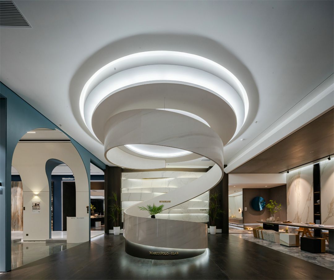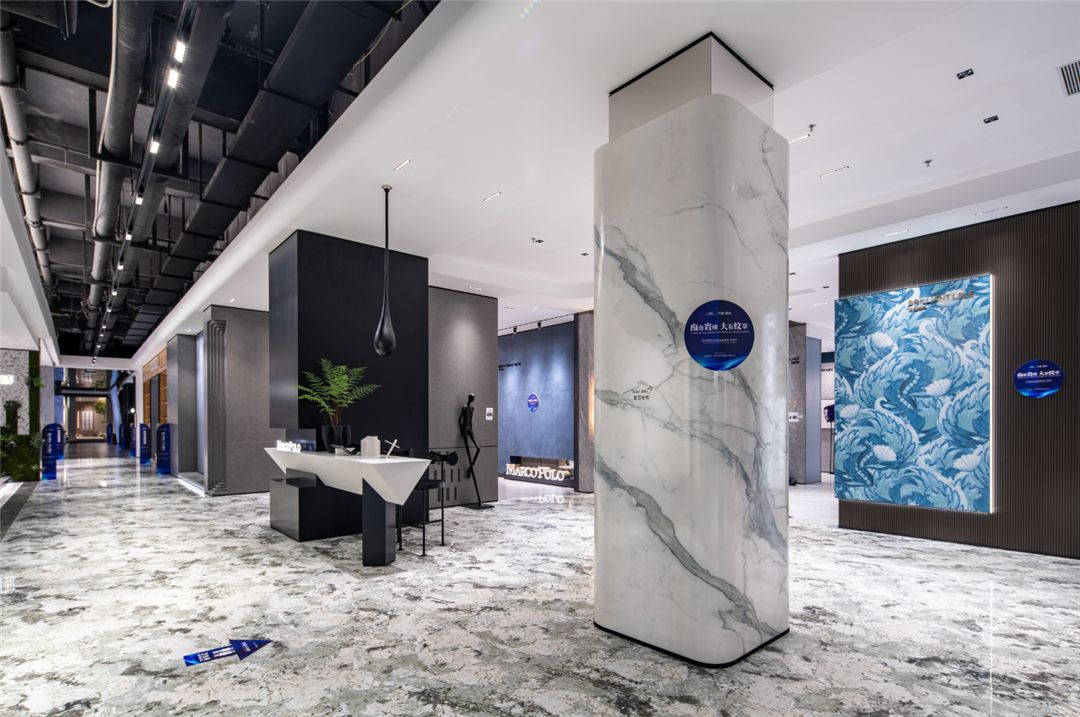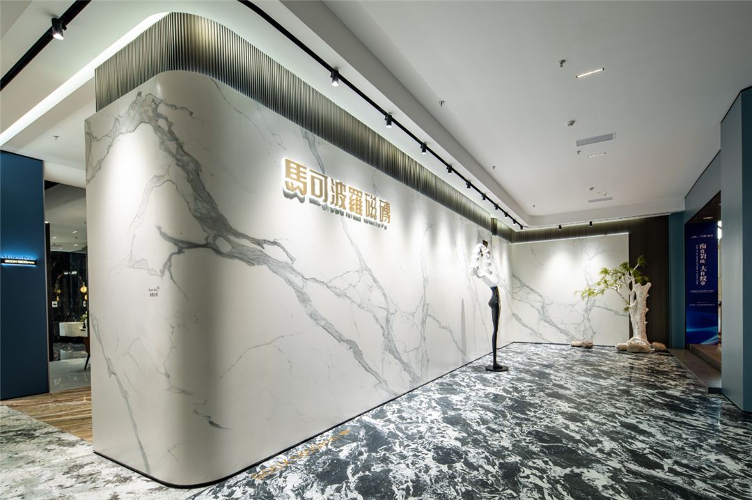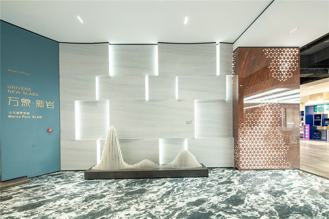 与马岩松在云洞中的曲线设计不谋而合,2021年马可波罗创新研发曲面岩板,突破平面设计局限,为空间设计提供更优质的设计材料。