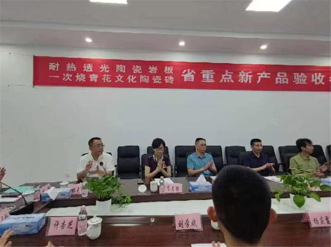 6月11日上午,宜春市科技局受江西省科技厅委托,以视频会议的形式组织并主持召开了由马可波罗控股旗下江西和美陶瓷有限公司、东莞市唯美陶瓷工业园有限公司、江西唯美陶瓷有限公司承担完成的省重点新产品计划项目“耐热透光陶瓷岩板”、“一次烧青花文化陶瓷砖”验收会。