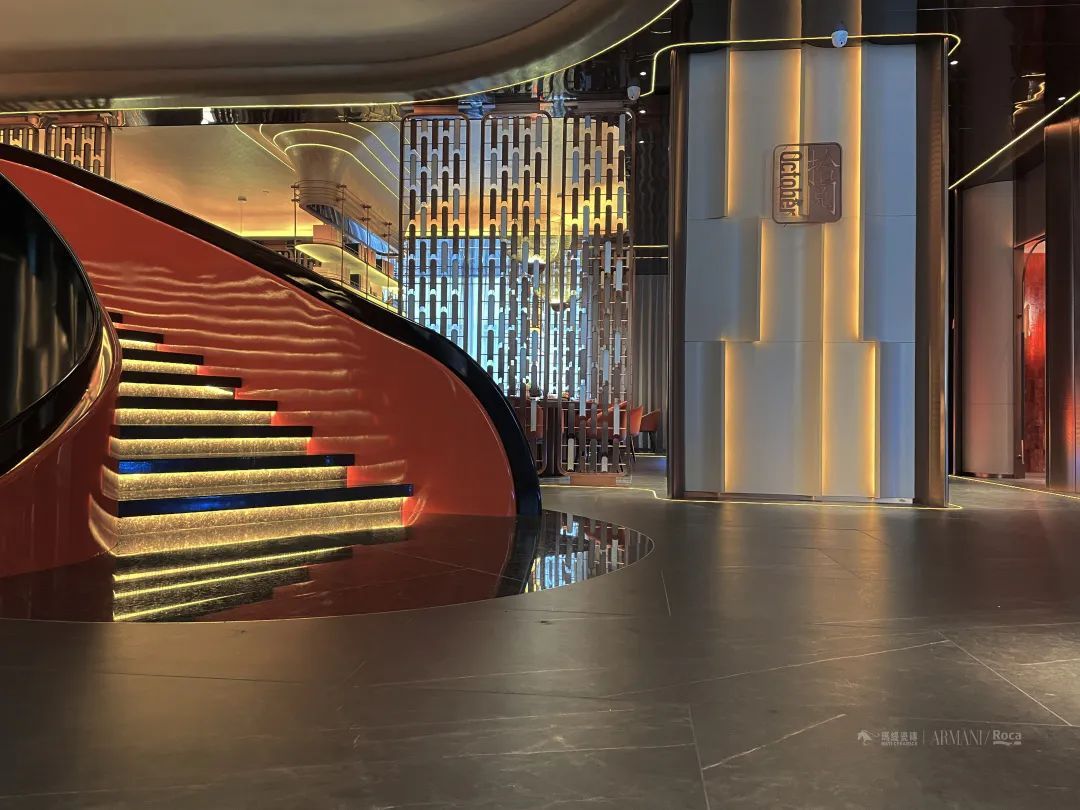 大厅楼梯如同一位身着红裙的舞者