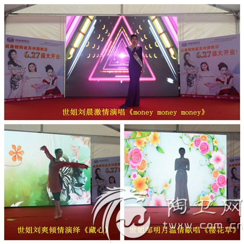 另外,三大世姐不辜负各地赶来的粉丝,献上精彩的节目表演。第61届世界小姐中国区总冠军、中国绿色推广大使刘晨以一首英文歌《money money money》惊艳出场,带动整个现场气氛。第62届世界小姐中国区总季军、中国绿色宝贝、慈善天使邹明月带来动听的《樱花草》,感动全场。第64届世界小姐中国区才艺单项赛冠军、影视演员刘爽则带来震撼全场的古典舞《藏心》,刚健挺拔、含蓄柔韧的气质,带来唯美的视觉享受。世姐刘晨说,有品位的人都会喜欢威廉顿的瓷砖,因为威廉顿的瓷砖花色丰富,整体设计体现美感。
