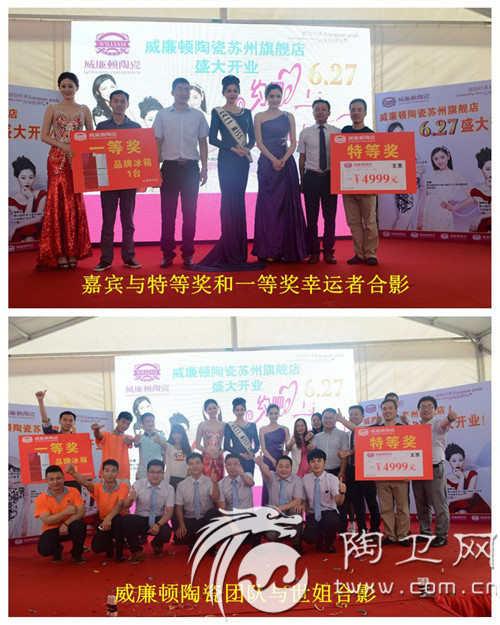 6月27日,威廉顿陶瓷苏州旗舰店携手第61届世界小姐中国区总冠军、中国绿色推广大使刘晨,第62届世界小姐中国区总季军、中国绿色宝贝、慈善天使邹明月,第64届世界小姐中国区才艺单项赛冠军、影视演员刘爽三大世界小姐举行隆重的开业典礼。威廉顿陶瓷总部营销总经理黄建、威廉顿陶瓷苏州旗舰店总经理刘辉、东壹元家居建材广场商业管理公司总经理唐龙方等领导嘉宾和数百名业主、以及多家媒体参加本次开业典礼。活动当天,下起了大雨,但抵挡不住嘉宾和业主们对威廉顿陶瓷的热情,纷纷冒雨赶来参加此次庆典。