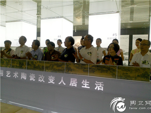 陶卫网讯 6月28日上午,景德镇陶瓷工业园区“名坊园”内的景浮宫公司总部展示中心,在优美的旋律声中,七位嘉宾代表和景浮宫董事长叶如煌先生,相继将各自手持的一块绘有《清明上河图》片段的钛纤艺瓷嵌入到一个特殊的展台,随着《清明上河图》长卷的完整拼合,点亮了展台上“用艺术陶瓷改变人居生活”的主题口号,与会人员共同感受到了景浮宫品牌的魅力及天舍系列新品的璀璨夺目——艺术与科技的完美结合将景浮宫新型艺术陶瓷新品发布会带入高潮。