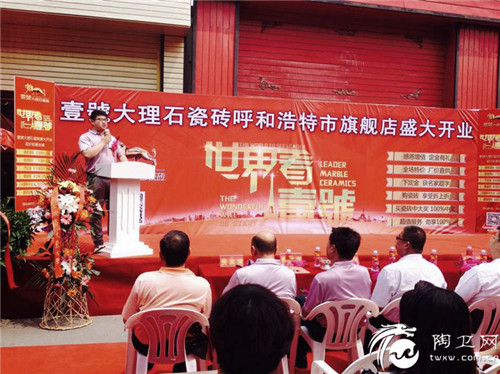 在活动上,呼和浩特金牛装饰城总经理张树军先生、壹號大理石瓷砖呼和浩特总经理田林春,壹號大理石瓷砖执行专员薛春晓及众多嘉宾与著名画家一同启动了壹號大理石瓷砖呼和浩特壹號会盛大开业的活动仪式,预示着壹號会在呼和浩特市场大展宏图。