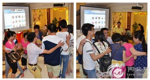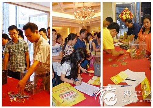 在抓金币现场,业主们则排起长队,兴高采烈地按顺序来抓取金币,并用金币的金额来抵扣部分购砖款。