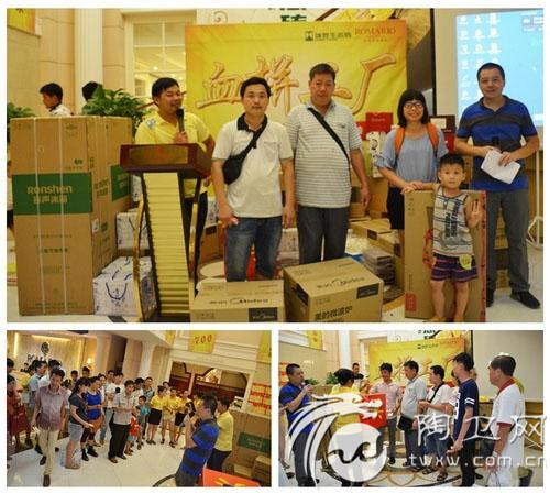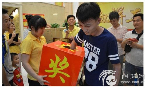 (现场有丰厚的奖品,佛山阳光陶瓷有限公司市场部总经理谢珂宣布抽奖活动开始)