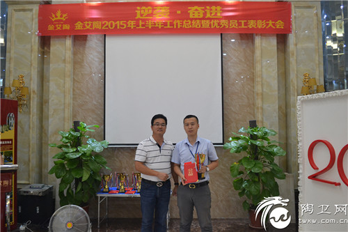 为总结肯定上半年工作中取得的成绩。树立榜样,弘扬先进,构建团队竞争进取的文化氛围,在优秀员工表彰大会上,分别评选出2015上半年销售冠军、开拓冠军、优秀服务奖与优秀团队奖。并由公司领导为获奖个人与团队颁发证书、奖杯。