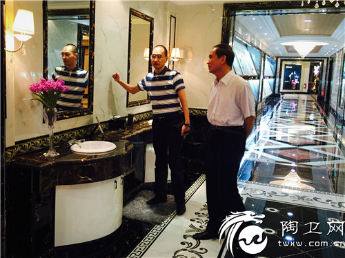 (金舵瓷砖总经理李丹锋与黄秘书长一起感受金舵文化)