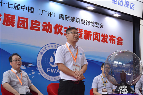 佛山市卫浴洁具行业协会秘书长刘文贵先生在启动仪式上讲话