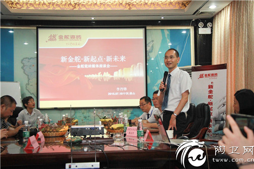 (金舵瓷砖总经理李丹锋对金舵品牌的发展动态做主题演讲)