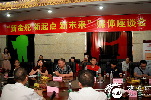 7月18日下午,金舵瓷砖以“新金舵、新起点、新未来”为主题的媒体座谈会在金舵领航馆召开。金舵集团总裁助理张润生、金舵瓷砖总经理李丹锋、金舵瓷砖市场部经理曹裕勇出席本次发布会。经历上半年的调整规划,金舵瓷砖正处在发展的关键点上,为了让大众更深入了解金舵瓷砖发展规划,金舵召开本次会议,与媒体人士交流互动,分享解读发展大计。