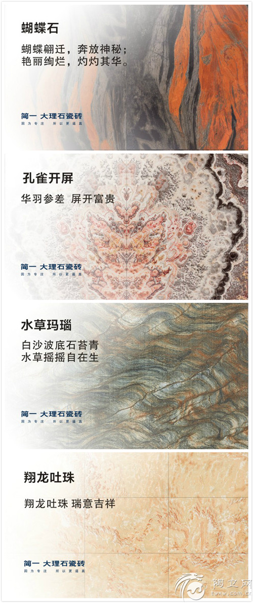 位于南国陶都的简一大理石瓷砖,成功地将名贵的珍稀的大理石复活了,大理石瓷砖这一全新品类,以AB面的形式成功入画。一幅幅在历史长河里珍稀的大理石画,重返人间。更以高清无损的品质抵御了岁月的侵袭。
