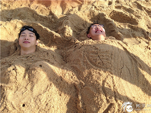 金黄沙滩、清凉海水、碧绿远山,尽情玩耍、嬉戏