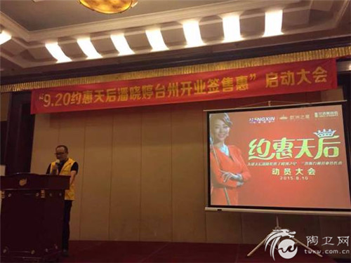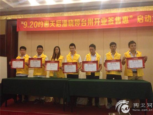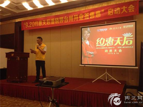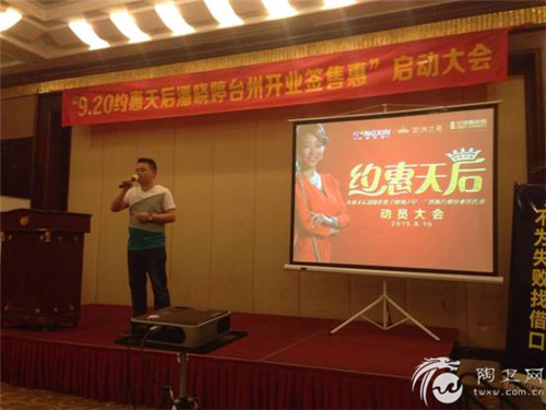 2015年8月10日,受台风影响,台州市暴雨不断,但却丝毫阻挡不了台州市宏鑫建材920“约惠天后”——九球天后潘晓婷携手兰洛斯瓷砖台州旗舰店开业签售惠启动大会的启动,此次活动得到兰洛斯瓷砖台州旗舰店的鼎立支持。作为兰洛斯瓷砖厂家,公司也派出了兰洛斯营销总监郭勇、运营总监郑竞一和市场部经理陈英豪以及区域销售精英等一行人鼎立支持“约惠天后”启动大会的顺利召开。