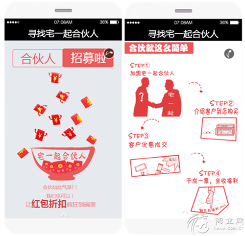 “东鹏·宅一起”是国内建陶行业首家O2O体验馆,互联网的协作与共享的基因与生俱来。凡成功报名成为“宅一起合伙人”,只要为体验馆推荐客户并促进成交,被推荐的客户都将享受展厅的购物优惠,而“合伙人”也将根据订单额大小获得相应奖励的“红包”,共享销售福利。“宅一起合伙人”的招募,将逐步面向全民开放。合伙人平台将由东鹏内部的员工和该品牌的用户组成,这两大部分“合伙人”对陶瓷产品的品质和服务都有着非常直观的感受,在推荐方面更显说服力,能更好地在其身边的人脉资源中激发圈层效应。