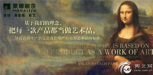 二十多年来,蒙娜丽莎瓷砖遵循文艺复兴时期著名艺术大师里奥纳多·达芬奇的探索精神和艺术理念,从装饰艺术中探求文化渊源,从家居生活中追寻设计灵感,探寻家居装饰与人文艺术的完美融合,满足中高端消费阶层浪漫、精致、健康的花样生活方式。其行业首款亮面干粒砖“罗马御石”与全新通体喷墨渗透瓷质砖“罗马宝石”两大系列行业顶级新品创新研发正标示着蒙娜丽莎人对现代陶瓷科技创新的执着追求。光环耀眼,没有遮盖蒙娜丽莎人最初的坚持与承诺,精湛的工艺和独特的设计,奠定了蒙娜丽莎在瓷砖制造业中的世界性地位。雄厚的实力背景和不断地技术更新,使蒙娜丽莎瓷砖在产品设计和质量上都达到了世界卓越水平,实现艺术与人文的完美结合。品牌所倡导的不仅是感观上的视觉效果,更体现拥有者的人生价值与内涵,启迪现代人对家居文化与艺术生活的思考。