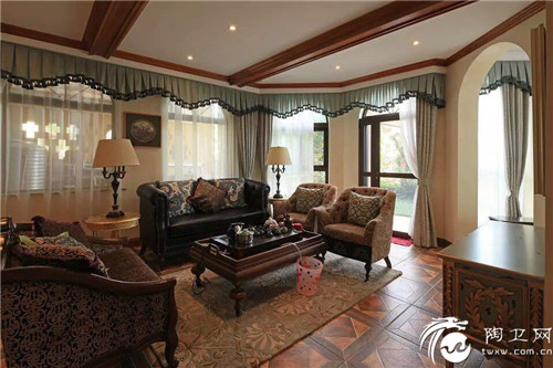 淡淡的米黄主调来刻画这个温馨的华丽别墅,以意式美学格调为主的家,以休闲来衬托出别墅的华丽。充满浓郁的异国风情的窗户便成了客厅的一大亮点。