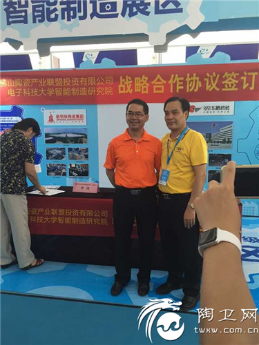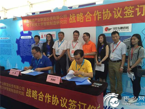陶卫网讯 记者张敏报道 9月10日,佛山陶瓷产业联盟与成都电子科技大学智能制造研究院在互联网+博览会在佛山市中欧中心正式签约,参加本次签约仪式的有成都电子科技大学智能制造研究院执行院长李冉、佛山市智能产业联盟投资有限公司董事长关润淡、新明珠集团副总经理李重光等24家佛山陶瓷骨干企业以及陶瓷资讯、陶卫网在内的媒体朋友。