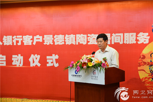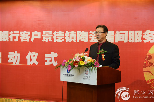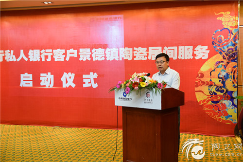 陶卫网讯 记者郭进报道 10月9日上午,“中国建设银行私人银行客户景德镇陶瓷居间服务”启动仪式在景德镇市开门子大酒店隆重举行。中国建设银行总行财富与私人银行部副总经理应红,中国建设银行江西省分行副行长彭家彬,景德镇市市委常委、副市长周少清出席并致辞;景德镇国家高新技术产业开发区管委会主任张良华,文化部中国艺术研究院艺术创作院院长、全国政协委员朱乐耕,景德镇市政府有关部门负责人,该项目相关合作机构,部分在景著名陶瓷艺术家及厂商代表,中国建设银行部分省市分行及省内各地市分行的代表也应邀出席。