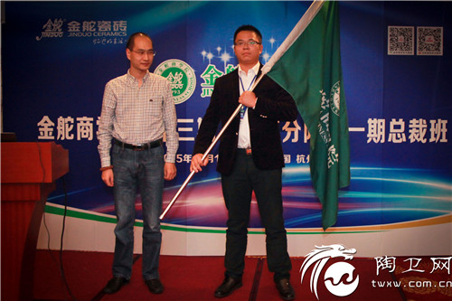 10月15日,金舵商学院华东分院第一期总裁班启动仪式在浙江杭州隆重召开,金舵瓷砖总经理、金舵商学院院长李丹锋,金舵江苏、安徽、浙江三省的经销商以及金舵商学院班主任陈君荣、教导主任刘华共同见证了这一神圣时刻。