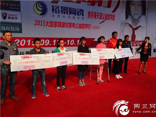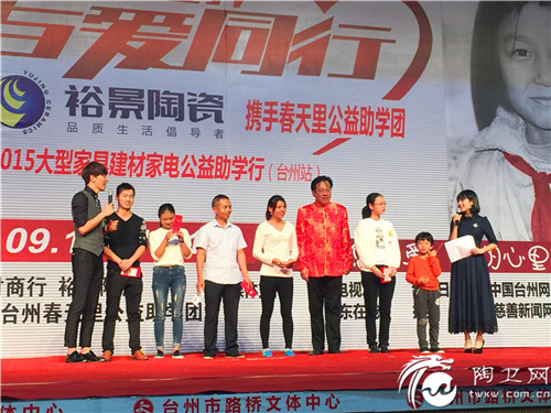 10月18日,台州迎来了一场“爱”的盛事。由裕景陶瓷携手春天里公益助学团并联合当地知名品牌,为贫困学子发起的“大牌价到,与爱同行”公益助学活动在路桥文体中心如期举行。