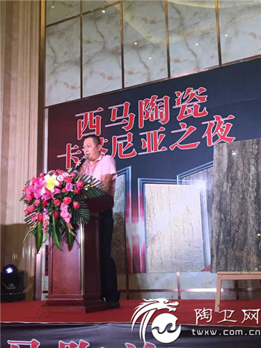 随后致辞的是西马销售副总兼今晚的拍卖会主持人秦潘升,首先,他表示今天的瓷砖市场是追求个性与实用化的产品市场,不仅要满足对空间使用的需求,更重要的是满足客户追求个性、回归自然的精神文化需求。