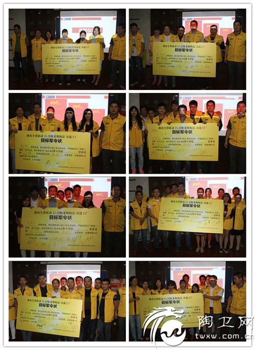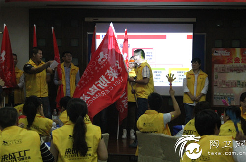 本次联动分为8个战区,实力相当的战区两两PK。在这场启动会中,他们要上台向对手放狠话、下战书,使得本次活动有了不少火药味,更加激发起大家的斗志。对对手“凶狠”,对自己也要狠点,每个战区都为自己订立的目标签下军令状,随后,李经理向所有战区依次授予火红的战旗,寓意着日后每个战区的业绩都将红红火火。