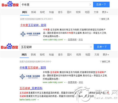 “卡布里”与“玉石瓷砖”相关词条搜索量半年内从零到近千万