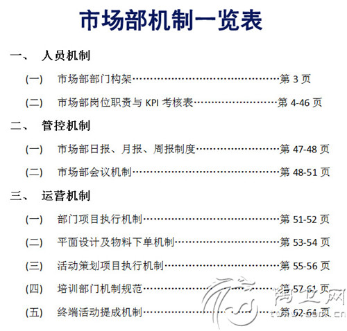 卡布里优化管理,确认部门机制,职责分工明确,以市场部为例: