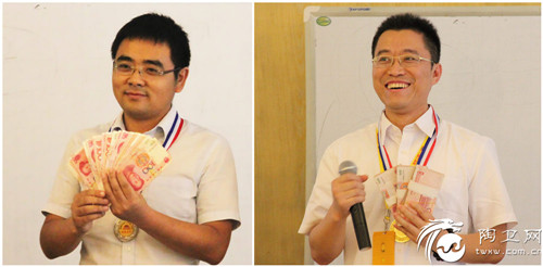 27日下午,到了每月一度的发奖金时刻,第一个领奖的是负责粤西和海口区域的张勇,张勇透露他的成功之道是:看书学习、重视培训和三天内解决问题的原则。本月的大奖得主是负责江苏区域的金建强,3万软妹币捧在胸口的感觉肯定爽翻了。不过,因金建强本人还在外洽谈业务,所以由亚细亚苏鲁皖大区经理张大伟代为领取,由于带出了一个好弟子,作为师傅的张大伟领奖时的笑容真是灿烂极了,足以融化全世界!
