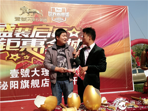 11月1日,“盛装启幕 钜惠全城”壹號大理石瓷砖泌阳“壹號會”荣耀开业!广东壹号陶瓷有限公司壹號大理石瓷砖品牌执行官潘应龙、壹號大理石瓷砖执行官于河、泌阳县工商局副局长边境、壹號大理石瓷砖泌阳壹號會总经理申红龙等领导及业主共同见证了这一盛事。开业当天,泌阳“壹號會”多重豪礼钜惠全城,吸引了当地消费者前来抢购,现场气氛异常火爆。