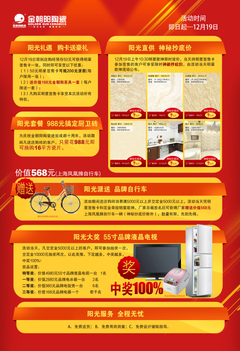 (2)送价值198元金朝阳茶具一套(每户限用一张)