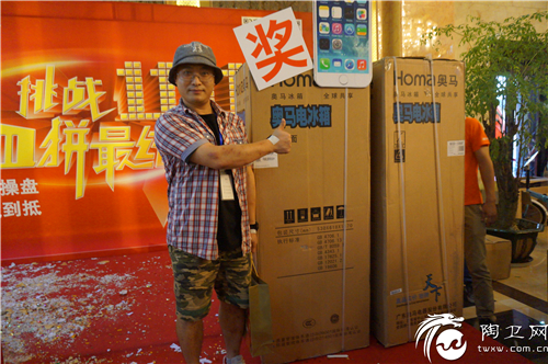 金舵瓷砖总经理李丹锋先生为获得iphone6的顾客朋友颁奖