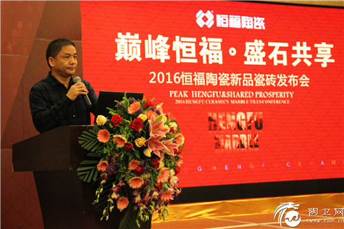 11月10日,“巅峰恒福·盛石共享”2016恒福陶瓷新品瓷砖发布会在广东清远恒大酒店盛大开幕。恒福陶瓷董事长冼明宽、集团副总经理刘衍英、冼明广、董事长助理徐发明、营销总经理范瑜、营销副总经理麦日荣、张启青等领导与来自全国各地的三百多名经销商以及多家媒体代表出席了本次会议,共同见证了恒福陶瓷的又一巅峰时刻。